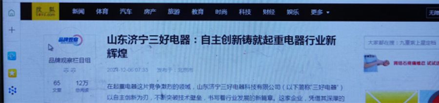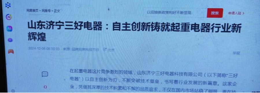濟寧三好電器堅持自主創新和產品戰略,得到國家官媒新華社及國內各大媒體的關注。于2024年11月4號和2024年11月5日,新華社及各大媒體連續發2次新聞稿,對濟寧三好電器進行了專題新聞報道。