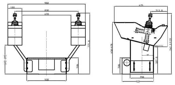1、QT7S1一體式港機聯動控制臺配置<SJ>P-XKDF全金屬結構主令控制器。座椅為普通座椅,客戶可選定。左右安裝側板用螺釘與底座固定在一起,側板上下調節量±25mm。