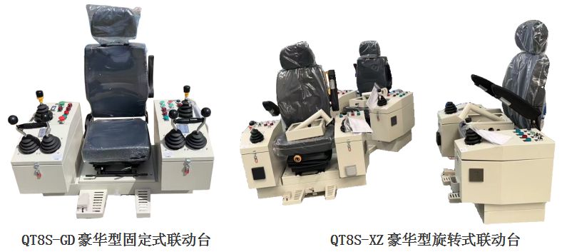 QT8S豪華型港機聯動臺,是為大型港口高價值大中噸位門座起重機和岸橋起重機以及架橋機、門式起重機等研發的機型。本機型也可用于高價值重要場合的冶金起重機。其機型有固定式和旋轉式兩種類型。機箱內均配置<SJ>P-VNSO經典操縱桿。其配置的座椅為豪華座椅。